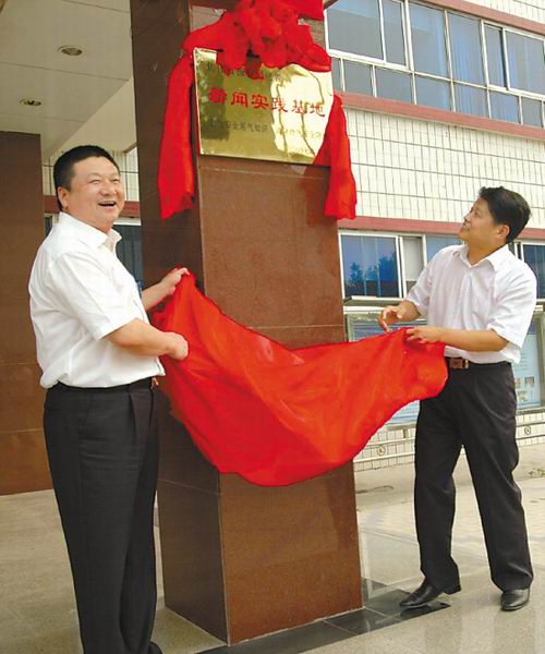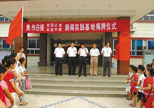 “中燃杯”新聞實地采訪競賽第一期活動舉辦后,在廣大校園記者及家長心中留下了深刻的印象。應廣大校園記者的要求,也為了給廣大校園記者一個實踐平臺,焦作日報社與焦作中燃公司協商決定在焦作公司建立校園記者新聞實踐基地,并于昨日舉行了揭牌儀式。公司總經理隋耀光、工會主席王保玉、副總經理邢衛東和日報社總編輯楊法育、副總編輯李弘出席了揭牌儀式。