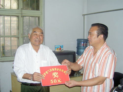 "焦作公司訊 9月15日,焦作公司副總經(jīng)理邢衛(wèi)東、鄭峰一行登門感謝舉報破壞燃氣設(shè)施者,并現(xiàn)場頒發(fā)獎品和獎金50元。