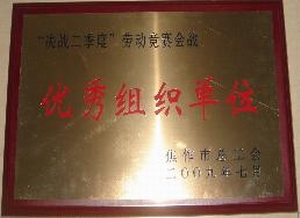 焦作公司訊 因在焦作市總工會組織開展的“決戰二季度”勞動競賽活動中,組織得力,成績優異,焦作中燃于日前被該市總工會授予了“勞動競賽”先進單位稱號。