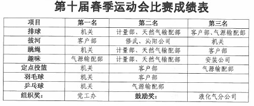 焦作公司訊 5月7日上午8:30,焦作公司第十屆春季運動會隆重開幕。在為期三天的賽程中,參賽選手圍繞拔河、跳繩、投籃、氣排球、羽毛球、乒乓球等運動項目展開了激烈的角逐。