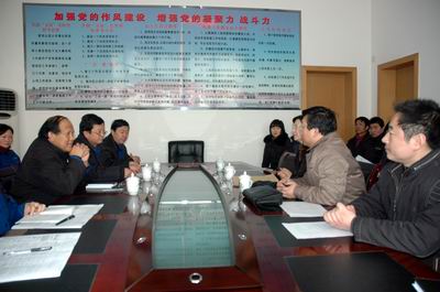 苗先文副主任(右一)向公司黨支部支委成員了解情況