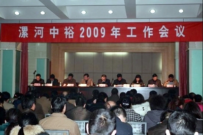 漯河公司 2月20日,漯河中裕2009年工作會議于該市建委大會議室內圓滿召開,漯河中裕領導班子、中層管理人員及先進代表參加了會議。中裕(河南)能源控股有限公司賈琨副總裁、漯河市建委閆清森副主任出席會議并做了重要講話。
