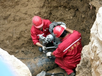 據悉,此次工程主要由煤氣集團組織實施,需在義鄭高壓煤氣管線上開孔,技術難度大、條件復雜。開工前偃師公司及總部相關領導與省煤氣集團就實施方案進行了多次商討修訂,對施工前的各項準備工作進行了了認真細致的安排,并自天津卓達公司聘請樂專業開孔技術人員進行施工。6月18日上午9時,開孔作業按照預定的方案啟動,防腐層剝離、焊制旁通、安裝球閥、安置液壓開孔具……相應工作依次展開,下午3時,開孔對接作業宣告順利完成,至此,偃師顧縣工業區管道燃氣工程建設關鍵性的一戰順利告捷。