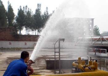 新密公司訊 6月11日,新密公司借助開展安全生產(chǎn)月活動的契機,組織其氣源站工作人員進行了一次以“預防為主,防消結(jié)合”為主旨的消防演練。期間,該公司場站人員通過對LNG、CNG儲罐區(qū)進行高壓水炮噴射演練,對整個消防水系統(tǒng)予以了測試,同時更換維護了一批干粉滅火器及消防水帶,以確保各類消防設(shè)施的正常使用。