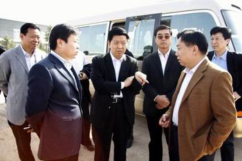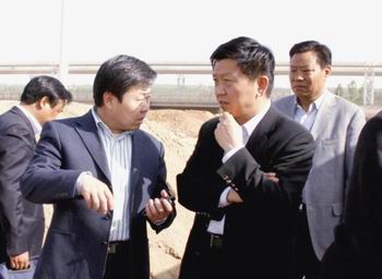 市委副書記、市長楊樹平(前排右一)聽取三門峽公司總經理楊豫忠介紹工程進展情況