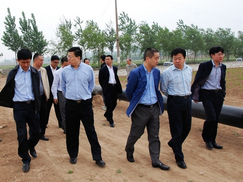 王主席一行于五月十六日上午率先抵達三門峽,在三門峽中裕公司總經理楊豫中、“西二線”指揮部指揮長盧迎九、三門峽公司和“西二線”指揮部班子成員及相關設計、施工、監理單位的陪同下前往西氣東輸二線三門峽支線工程施工現場考察建設情況。