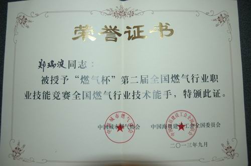 大賽結(jié)束后,中國(guó)城市燃?xì)鈪f(xié)會(huì)下發(fā)表彰文件,組委會(huì)舉行了隆重的頒獎(jiǎng)儀式。至此,中裕燃?xì)獾膸酌夹g(shù)精英以良好的成績(jī)完成了在全國(guó)燃?xì)庑袠I(yè)技術(shù)競(jìng)賽中的“首秀”。