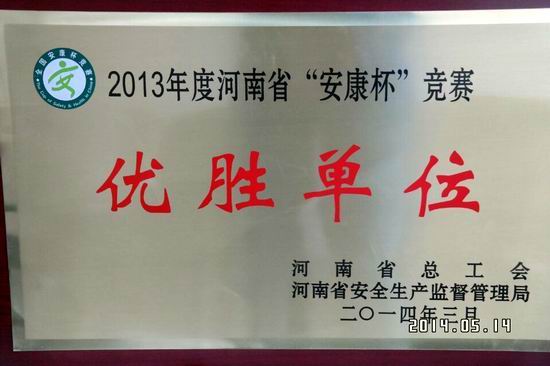 喜獲2013年河南省“安康杯”競賽優(yōu)勝單位榮譽