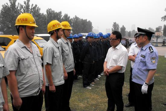 當天上午10:00,隨著沁陽市反恐辦主任、公安局局長鄧予生通過數字對講機下達指令,沁陽市反暴恐緊急拉動演練活動正式開始,演練科目包括:應急指揮→快速反應→整體開進→應急通信→現場指揮→現場處置→活動講評等。各參與單位各有不同的演練任務,沁陽分公司的任務是配備專業搶險車2輛、隊員10人攜帶搶險設備,迅速到達現場,做好對燃氣設施搶修的準備。整個演練場面氣勢恢宏,各項動作緊張而有序,所有參演人員都精神飽滿、熱情高漲,展示了各參演單位應急力量良好的精神風貌,11:00整演練結束。