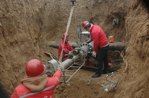 此前,濟源市次高壓燃氣管網呈U型結構運行,一路氣源從中馬頭天然氣門站由東向西北方向輸供,另一路從東郭路天然氣門站由東向西南方向輸供,兩路次高壓管道通過西環路接通。2014年,基于濟源市新增供氣渠道——安洛線孟州至濟源天然氣支線的投運,濟源公司適時優化管網結構,啟動了東二環(濟源大道至堽頭段)次高壓天然氣管道工程建設,并于今年1月中旬竣工。該管道全長1.8公里,設計壓力1.6MPa,管道兩端分別與正在運行的次高壓主管道交匯。1月15日,濟源公司順利實施了原有在運次高壓管道的兩處帶氣開孔作業,在不停氣的情況下完成了新舊管網對接。