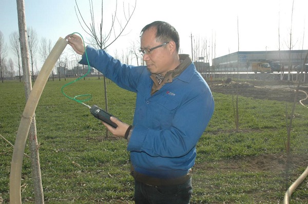 在東二環次高壓管道置換現場工作人員檢測來氣成分