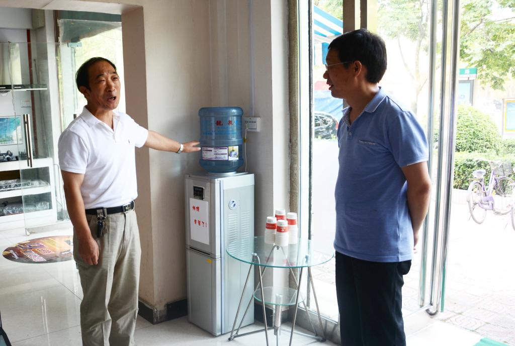 揭牌后,史主席走進營業廳,恰遇正在接水喝的環衛工人張大娘,她高興地說:“這里面服務好又涼快,我們干活累了的時候都能夠到這兒來歇會兒、喝口水,解解乏,真不賴。”