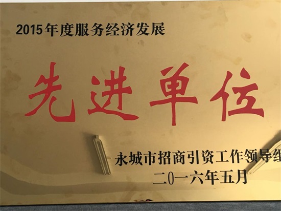 永城公司訊 近日,永城公司首次被永城市招商引資工作領(lǐng)導(dǎo)組授予“2015年度服務(wù)經(jīng)濟發(fā)展先進單位”榮譽。